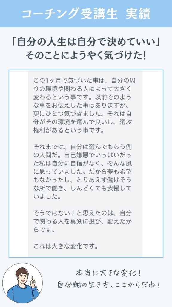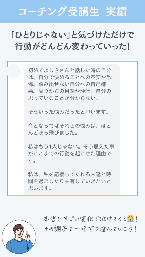 - 自分が一歩踏み出せば、生きづらさから解放されるんだ!